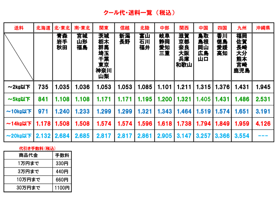 ※20kgを超える送料につきましては、お問合せください。
